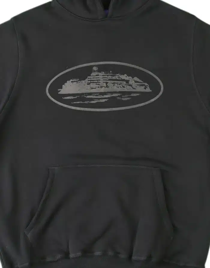 The Corteiz Alcatraz Hoodie – Black delivers a timeless streetwear look with versatile appeal. Its sleek black base emphasizes the iconic Alcatraz logo, making it a staple piece for any urban wardrobe.